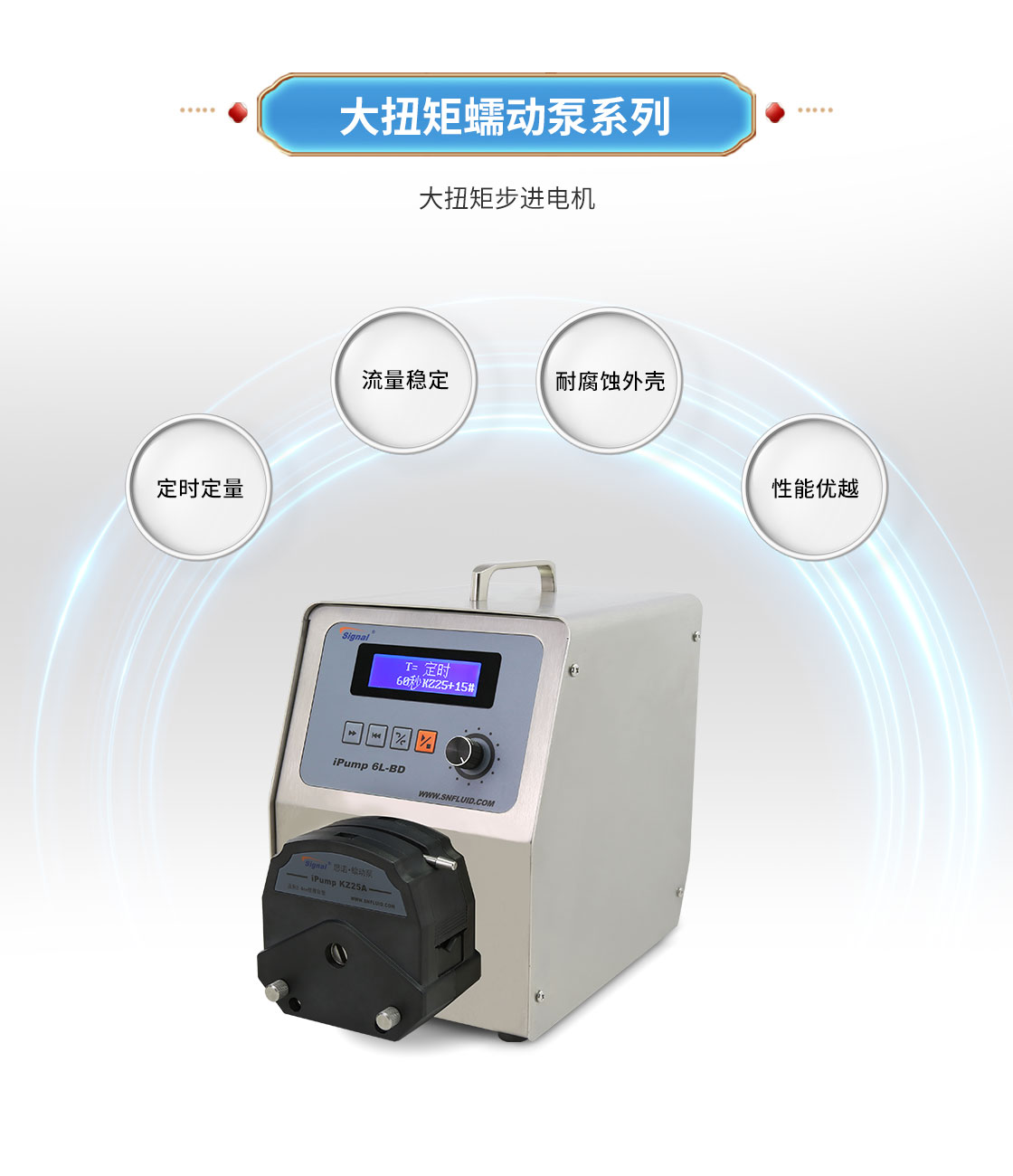2.大扭矩步進電機驅動,適合多泵頭串聯使用