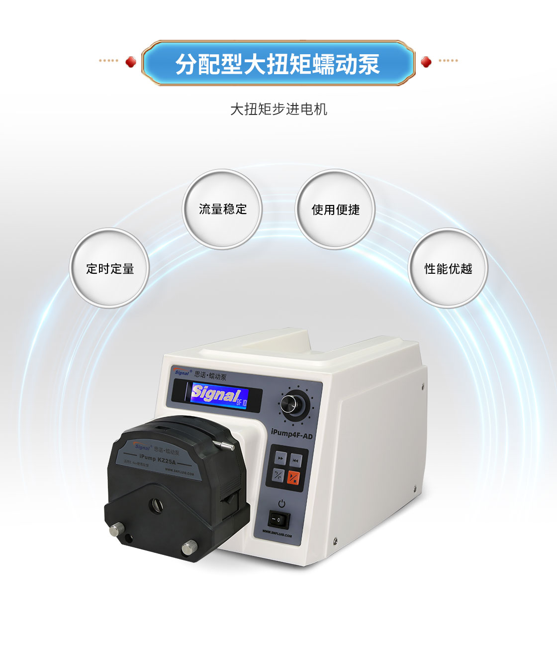 2.大扭矩步進(jìn)電機(jī)驅(qū)動(dòng),適合多泵頭串聯(lián)使用;